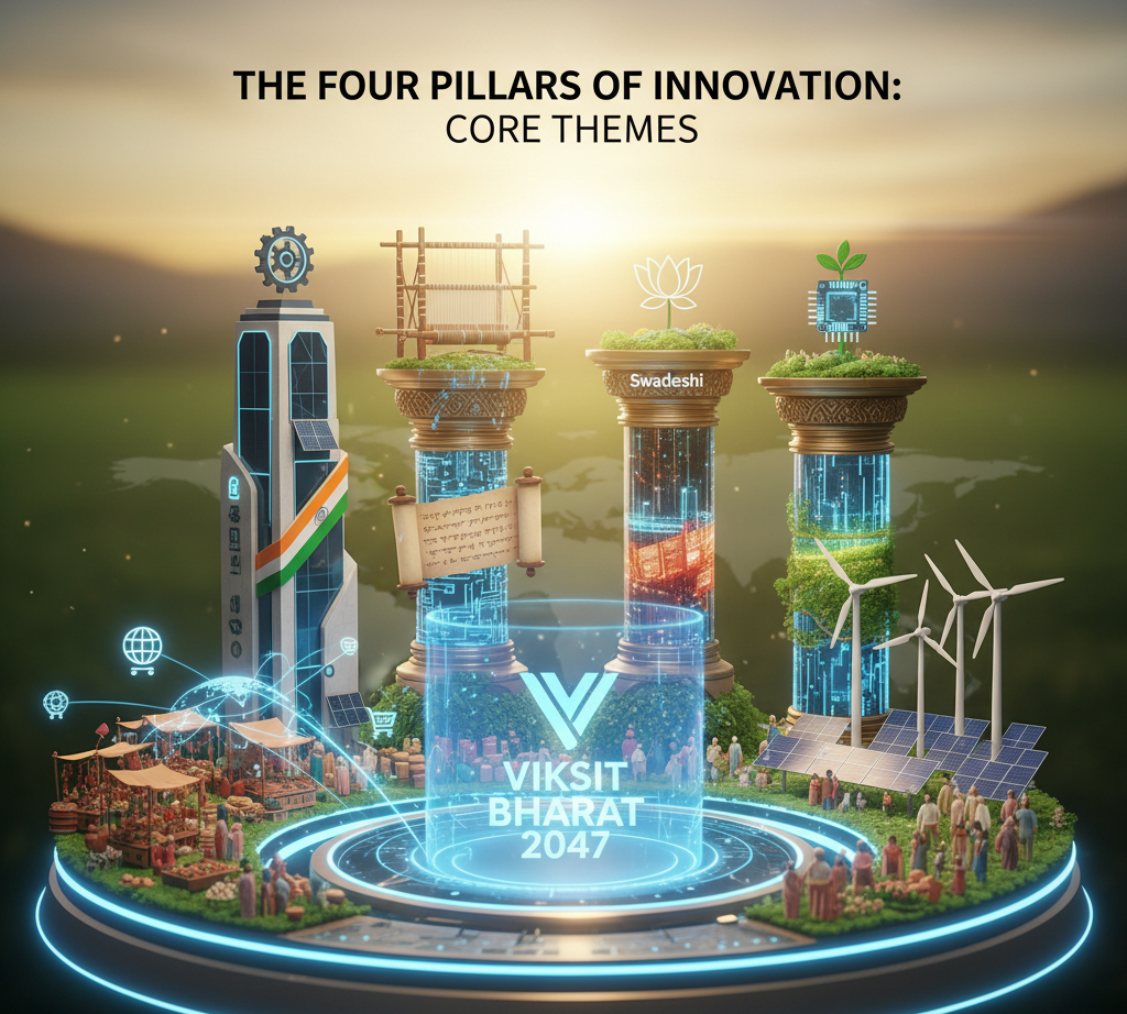- సమృద్ధ భారత్ (సమగ్రాభివృద్ధి చెందిన భారతదేశం): సుస్థిరత, సమానత్వం, సామాజిక సమ్మిళితం, మరియు మొత్తం జాతీయ శ్రేయస్సును లక్ష్యంగా చేసుకుని పరిష్కారాలు కనుగొనడం.